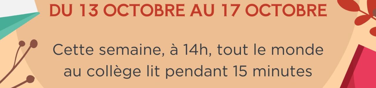 Le collège Léonard De Vinci se met à la lecture pour la dernière semaine avant les vacances d’Automne: chaque jour, à 14h, toute la communauté éducative (élèves, professeurs, personnels) lit pendant 15 minutes. A vos livres!